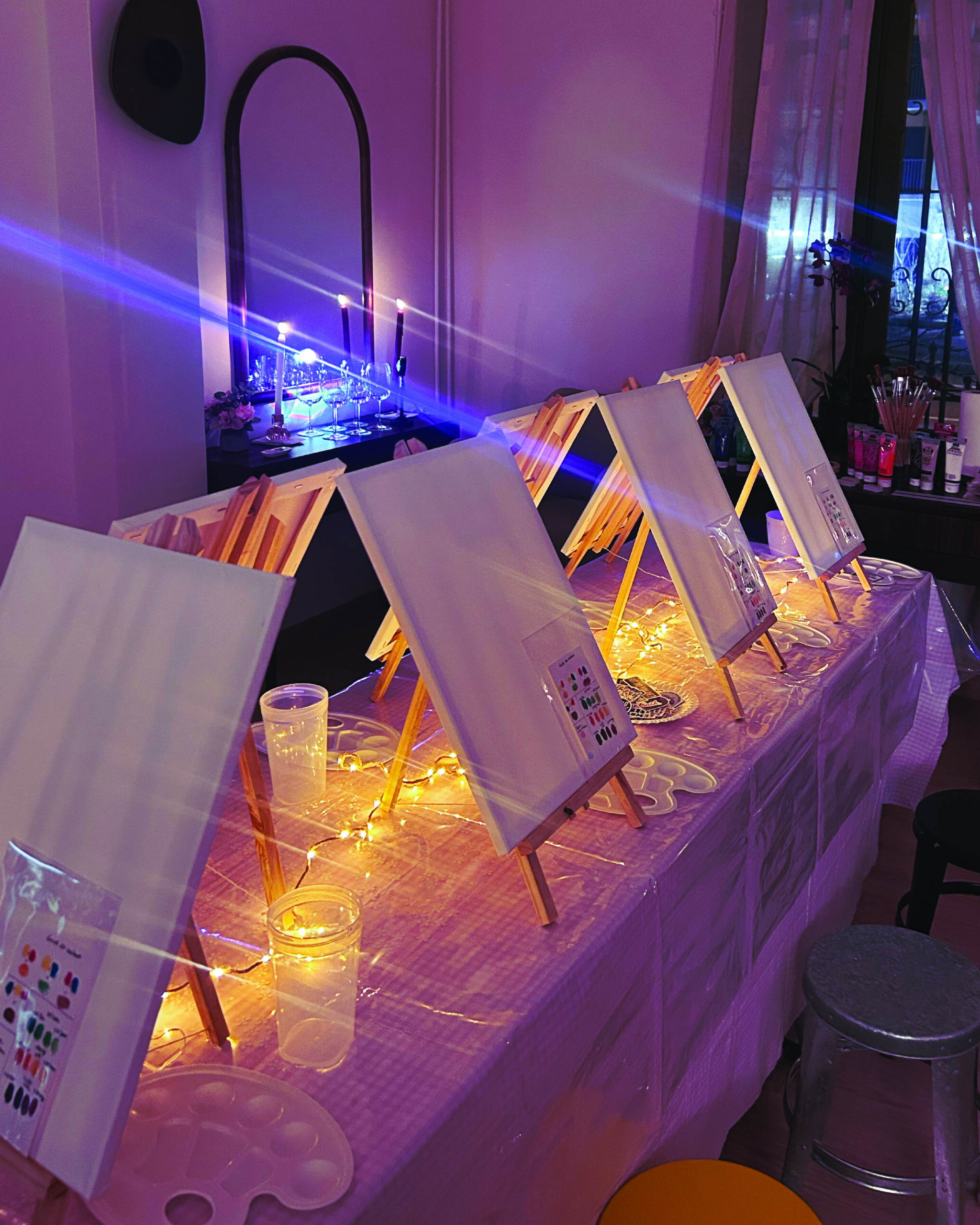 Après une longue journée de travail, rien de mieux qu’un moment pour souffler… Pensés comme un afterwork créatif : tu arrives, tu te détends, tu grignotes, tu peins, tu profites.